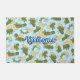 Stuffed grape leaves with rice and herbs. Lemon slices, dill, mint leaves and tzatziki dip. Custom background colour. Seamless pattern. Custom text.