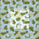 Stuffed grape leaves with rice and herbs. Lemon slices, dill, mint leaves and tzatziki dip. Custom background colour. Seamless pattern.