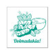Stuffed grape leaves with rice and herbs. Lemon slices, dill, mint leaves and tzatziki dip. Custom text.