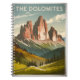 A breathtaking and nostalgic depiction of the Dolomites, Italy, renowned for their dramatic mountain peaks and stunning natural beauty. The design captures the rugged alpine landscape with towering limestone cliffs, lush green meadows, and serene mountain lakes. Rendered in a vintage style, the artwork evokes the tranquil charm and adventurous spirit of the Dolomites, inviting viewers to experience its outdoor allure and scenic majesty.