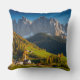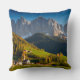 Throw pillow with the village St. Magdalena with its church in the Villnoesstal in South Tyrol, Italy, during autumn season with the Geisler Dolomites mountains in the background.