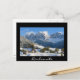 Dolomites village in winter black text postcard
