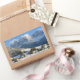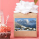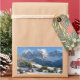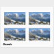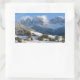 Rectangular photo sticker of the village St. Magdalena (Santa Maddalena) with its church in the Villnoesstal in South Tyrol, Italy, in the snow during winter.