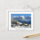 Postcard of the village St. Magdalena (Santa Maddalena) with its church in the Villnoesstal in South Tyrol, Italy, in the snow during winter with a white border and the text: 'Dolomites'.