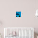 Dolphin swimming by little girl in an aquarium. "Never stop wondering" wall art. Original design by Cherie Haines.