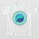 Cool, cute kids ocean, sea life, theme design with cartoon aqua turquoise dolphin on aqua green, turquoise and white chevron stripes pattern.