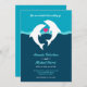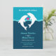 This colourful, modern, blue wedding invite features two playful dolphins in the ocean waves. Perfect for a destination beach wedding by the sea or a cruise ship wedding. Easily personalise with your wedding details.