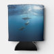 Stunning underwater photography of a dolphin family playing beneath the surface.