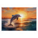 A dolphin jumping as the sun sets over the ocean, ai generated image.