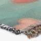 A quality printed throw has its advantages. This is a much finer weave throw than its loopier cousins, and though lighter, it is worth the investment for custom room accessorizing. The back is much prettier than the typical brown, and the fringe on the long sides very vivid, the selvage nicely done. Before photographing, I washed the throw in cold water, delicate, with a thicker woven throw the same size. On tumble dry low, this throw was dry in half the time as the other. This is a very practical quality if you use throws for furniture covers or to wrap up in frequently. The sleekness of the fabric makes it a great layer for accenting or protecting without the feeling of sitting on too much stuff. Perfect for napping or when you feel a light chill coming on. The color printing is beautiful and on this fabric, matched the design and color of my Photoshop image. This is an advantage for blending room fabrics and colors. The fringe on the short sides prints the colors from the design image and therefore varies from the side fringe. I streaked a white fractal line through the plaid pattern to give the illusion of weaving. This printed as crisp as an illusory thread, and put some white in the short side fringe, showing another advantage of print vs loomed- for artistic purposes, line lines, detail, and color integrity can be planned and preserved. My loomed throws have color limitations and more of a needlepoint texture. Print throws reproduce an exact image. The throw felt a little stiff straight out of the package, but this went away in the first delicate wash. Of course I searched the wash water for ink or bleeding and there was none.