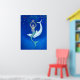 Dolphin Moon Mermaid fantasy art Poster. The moon becomes a white dolphin who helps lift a mermaid up to attain her starfish. Poster form the original fantasy art painting by Sue Halstenberg