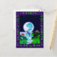 A natural fantasy scene where a magical blue Dolphin leaps from warm tropical waters before a glowing Blue Moon. A natural border of pacific island leaves forms a gorgeous border around the image.