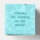 Underwater dolphin favour box with text on top. Thank party guests with a little box full of favours. The tropical sea green water design covers all sides with dolphins swimming all around. Wavy, bold letters on top can say, “thank you” to party guests. Fill with candy, stickers or small toys. Boxes come flat and will need to be folded.