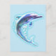 A vibrant digital depiction of a dolphin is shown leaping gracefully against an aqua blue background. The dolphin glows with iridescent colours and is surrounded by stylised water splashes that enhance its dynamic movement.