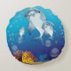Fun cartoon dolphin on a round throw pillow with personalised name.