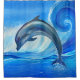 Looking for unique dolphin shower curtains and bath accessories that you can personalise? Here is a custom print of a hand painted dolphin jumping out of the sea with large swirling waves to fit your ocean theme / beach theme bathroom perfectly! Artistic and brilliant in blues, sea greens and foamy white... bring a sense of tranquillity and rejuvenation to your bathroom, and liven up the space with this happy leaping dolphin painting! Category: unique custom shower curtains with dolphins / painted dolphin shower curtain designs with a large ocean wave. Colours: royal blue, sea green, turquoise, cyan , sapphire, grey and white.