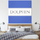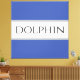 Classy strong bold font inside a highlighted wide white stripe against medium blue backgrounds with "DOLPHIN" text. The text is optional and can be personalised.
