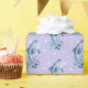 Watercolor dolphins and flowers on white polka dots and purple background.