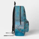Blue water and jumping dolphins backpack for kids. Every part of this fun backpack has dolphins and / or water images. Deep sea blue colour with a place for his, or her, name on the front, zippered pocket in white. Perfect for starting a new year at school, or travelling to the grandparents house.