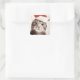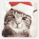 Domestic tabby cat wearing red Christmas hat Square Sticker