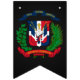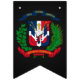 Party bunting banner with the national emblem of the Dominican Republic; blue, red and white design