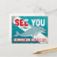 See You In Dominican Republic Caribbean retro dolphin travel design. Charming turquoise vintage style with a cheerful swimming dolphin.