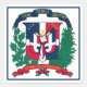 The coat of arms appears in the centre of the flag of the Dominican Republic.