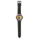 My husband loves the watch, he likes the dial, the graphics, the band, and it keeps perfect time.