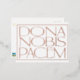 You like your holiday cards to be meaningful, yet simply stated. This holiday season, the sentiment foremost on your mind is dona nobis pacem, the Latin for give us peace. Here is that wish expressed in a simple yet bold font design, in shimmering real foil gold, rose gold, or silver. On the reverse is the translated message, Give Us Peace, and the standard postcard style.