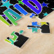 This vibrant and fun birthday-themed jigsaw puzzle design features the message "HAPPY BIRTHDAY, DONALD" with the characters having a colourful rainbow spectrum inspired gradient pattern, in addition to an exciting stars background pattern. An exciting puzzle like this might be a fun way to send birthday wishes to somebody named Donald. [~Z0000468]