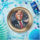 Elegant faux-gold border with a unique digital painting of Donald J. Trump with American flag in the background. Classy collectable 2024 presidential election memorabilia for collectors. Perfect novelty party supplies for Republican rally and campaign events. This image was AI generated with full commercial licensing for resale.