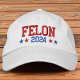 Donald Trump 2024, this funny hat for the Trump supporter dad, husband, friend or anyone makes a bold statement. Felon 2024 with red white and blue stars on a classic hat with a message of patriotic pride! Cool popular red hat supporting a Vote for Donald Trump 2024 political Campaign with this fun embroidered baseball cap MAGA theme merchandise in red and white or other colours. Great for republican supporters of the conservative candidates
