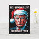 Send a boldly festive greeting this season with our exclusive Donald Trump Christmas Card! This clever design features the 45th President "making a list and checking it twice" in a playful political twist on a classic holiday theme. Perfect for conservative families, MAGA supporters, and anyone who loves patriotic Christmas cheer, this card delivers a powerful message of loyalty and tradition. Imagine the smiles when your friends and family receive this unforgettable greeting—a card that proudly celebrates American values while wishing recipients a truly "great" holiday season.