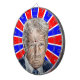 Photo of Donald Trump has been altered into a caricature design. Behind the face image is a red white and blue pinwheen style background. Just the thing for your gameroom whether you love him or hate him.