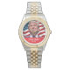 The watch is very nice, the picture is great and the watch looks like quality. The only problem I am having with it is that it is a little too large, and I also can't figure out how to open the clasp. No directions came with it. Very good. The printing is perfect and the watch keeps good time.