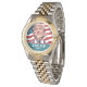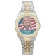 The watch is very nice, the picture is great and the watch looks like quality. The only problem I am having with it is that it is a little too large, and I also can't figure out how to open the clasp. No directions came with it. Very good. The printing is perfect and the watch keeps good time.