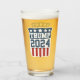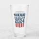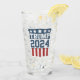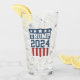 DONALD TRUMP for President in 2024 glass with round red, white and blue shield design. Republican Party Ticket.