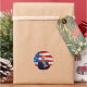 Donald Trump in front of USA flag sticker