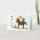 A teddy bear rides a donkey raising a heart flag to say I Love You. customise text. Make it a birthday card or invitation to a kid party!