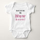 Design features fully customisable text, "Don't ask me. I'm" in black print. The words, "New Here!" are displayed in a large, pink font. All text is customisable. Designed as part of the Toddlers/Baby shirt collection.