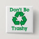 Don't be trashy...Recycle. Raise awareness about global warming and the environment. Great for Earth Day on April 22 2009. Go Green for Mother Earth. Earth Day button