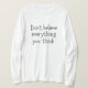 I love this shirt. I had written to the artist asking her if this picture was available on a shirt, and she wrote me back telling me where I could find the shirt. These shirts can be custom made to have a different saying. I loved this saying and went with it. The artist wrote me back later to tell me that she had seen my order go through. How's that for service? Pretty special. It's just as displayed. Perfect!