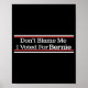 Dont Blame Me I Voted For Bernie Sanders Poster