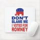 Don't Blame Me I Voted For Romney...So Barack Obama won the 2012 Presidential Election and the United States is stuck with him for four more years. Let the countdown to 2016 begin. Don't let people think you voted for this idiot. Let everyone know its not your fault, you voted for Mitt Romney. This funny design is a must have for any right wing conservative Republican, any pro-life activist, anyone who is against Obamacare, or for any anti-Obama supporter. See our shop for more fun, unique, and humourous pro-Republican shirts, gifts, and more.