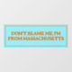 "After Nixon was re-elected, he would later resign only a year and a half into his second term due to his involvement in the Watergate scandal and the illegal activities he committed. After the Watergate scandal broke and Nixon resigned due to criminal activity, bumper stickers with the words "Don't blame me! I'm from Massachusetts" (and variants) became a symbol of the sentiment felt by Massachusetts residents, serving as a proverbial "I told you so" to the 49 states that supported Nixon's re-election."