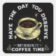 funny distressed coffee design has a retro graphic of a cup of coffee and has a textured text that says "have the day you deserve, don't bother me it's coffee time.
