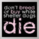 "Don't Breed Or Buy While Shelter Dogs Die" white and light pink grunge design. Show your support for rescue and adoption of shelter dogs, and rescues who take dogs off "death row".