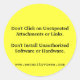 Helps protect computers from infection by reminding people not to open attachments or links, and not to install unauthorised software or hardware.