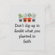 Don't dig up in doubt what you planted in faith Sq Postcard