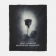 A blanket with a saying: Don't forget to dance in the moonlight. Designed with a dark amd mysterious image of goth style black rose with red dripping blood on its petals. A black grunge background with an off-white colour in the centre highlighting this moody and macabre rose.